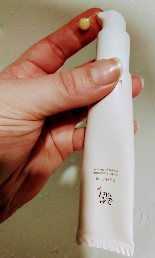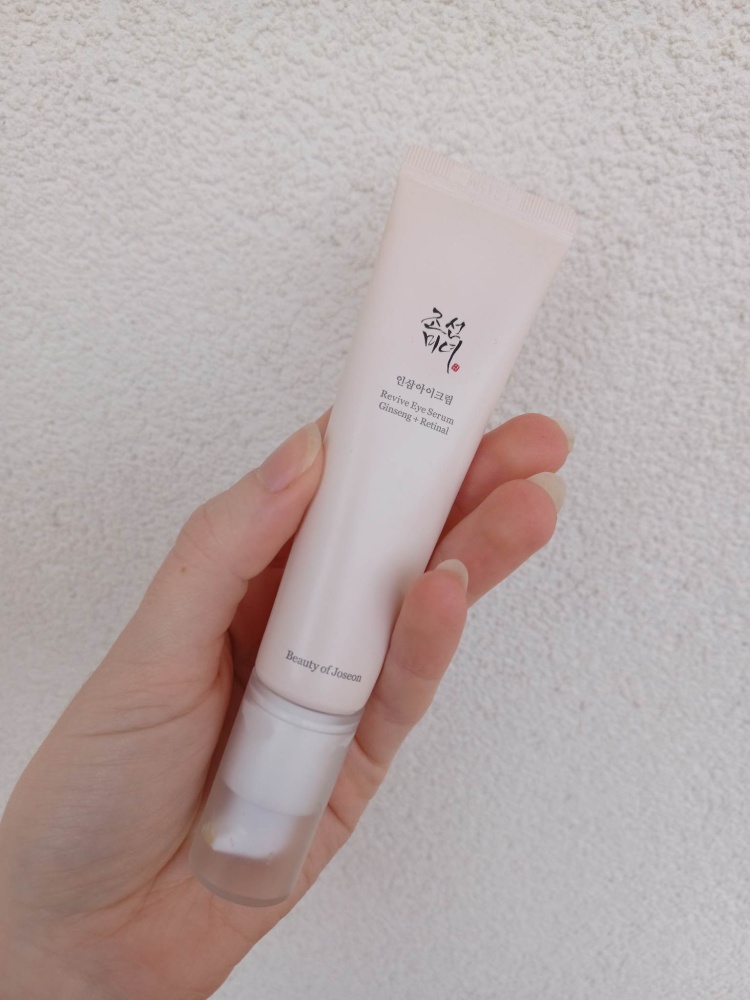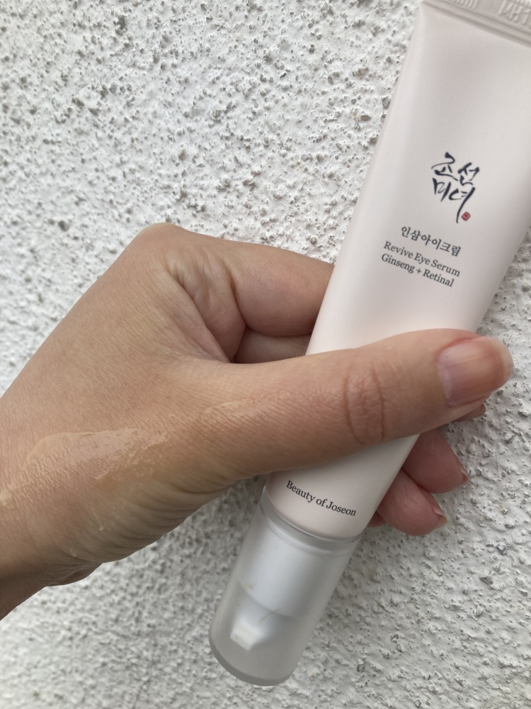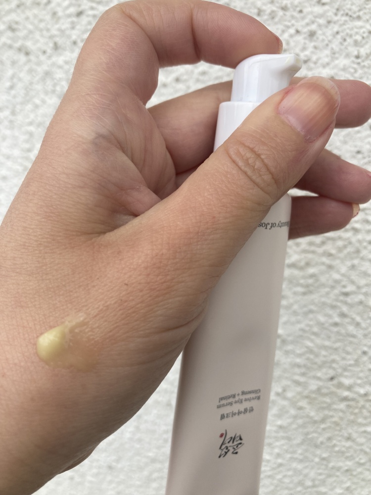 Očné sérum od Beauty of Joseon s obsahom ženšenu a retinalu ma veľmi pozitívne prekvapilo svojou ľahkou textúrou a účinkom. Po 3 týždňoch denného používania môžem povedať, že krém okolie očí nedráždi, nespôsobuje pnutie pokožky, má nemastnú konzistenciu, je príjemný po nanesení na pokožku, rýchlo sa vstrebáva, nezanecháva žiadny farebný film okolo očí. Hoci mám normálnu pokožku, stáva sa, že očný krém mi nesadne a štípe, príp. spôsobuje slzenie kvôli obsahu alergénov. V tomto prípade tomu tak nebolo. Sérum jemne dožlta sfarbené, obsahuje pre očné okolie vyživujúce látky, dodáva antioxidanty a rozjasňuje jemnú pokožku okolo očí. Top v zložení sú najmä retinal, niacinamíd a extrakt z koreňa ženšenu. Odporúčam vzhľadom na kvalitné ingrediencie a výbornú znesiteľnosť na očné okolie. Naviac je bez parabénov, silikónov a parfumácie, čo je kľúčové pre pleť, špeciálne okolo očí. Tiež ako výborný anti-ageing produkt na zaradenie do dennej pleťovej rutiny. Praktické je nanášanie pomocou pumpičky a až 30 ml objem. Vďaka baleniu v tube je vhodný aj na cestovanie. Nespozorovala som žiadne negatívum.