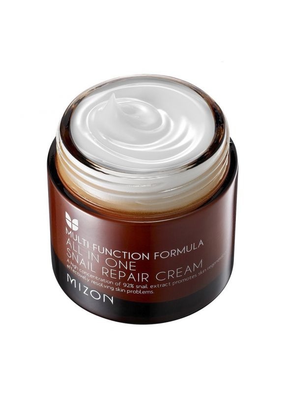 Reparujúci krém od značky Mizon obsahuje 92 % slimačieho sekrétu, vďaka ktorému výborne regeneruje a hydratuje pokožku a eliminuje výskyt jaziev a škvŕn po akné. Je ideálny pre mastnú, aknóznu a zmiešanú pleť, pretože má veľmi ľahkú konzistenciu.