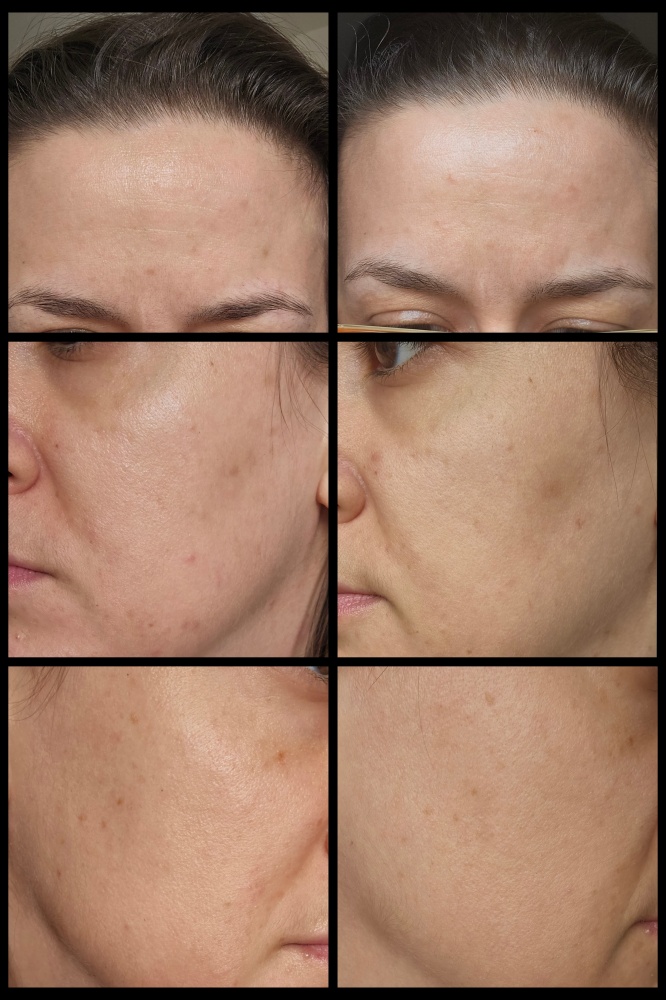 Fľaky su ozaj bledšie, pleť je krásne zjednotená. Ale mne to upchávalo trochu póry, čo mi vytvaralo zase ďalšie flaky čize nanajvýš kontraproduktívne sérum. Spravila som si foto pred a po mesiaci. Ľavý stlpec je pred pravý po.