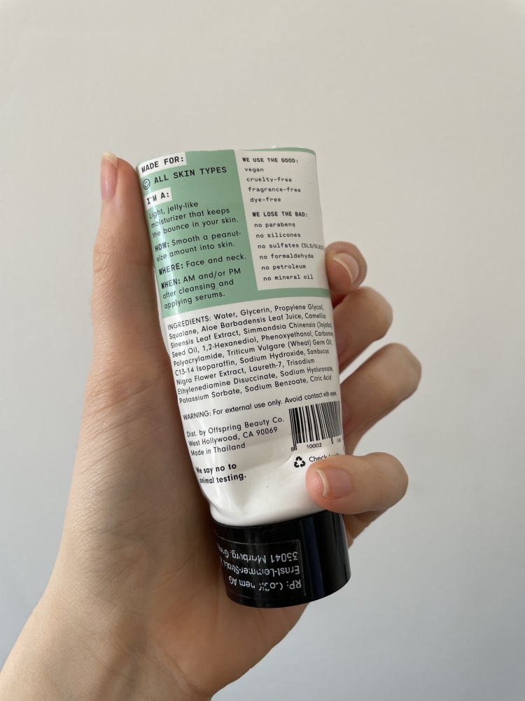 Dokonalý gél-krém! Obsahuje aloe, zelený čaj a jojobový olej - zložky z ktorých benefituje najmä mastná/zmiešaná/aknózna pleť. Rýchlo sa vpije do pleti, zanecháva polomatný finiš, nie je lepkavý, neupcháva póry,má úžasnú ľahkú konzistenciu. Stojí 17€, mám ho z cult beauty.